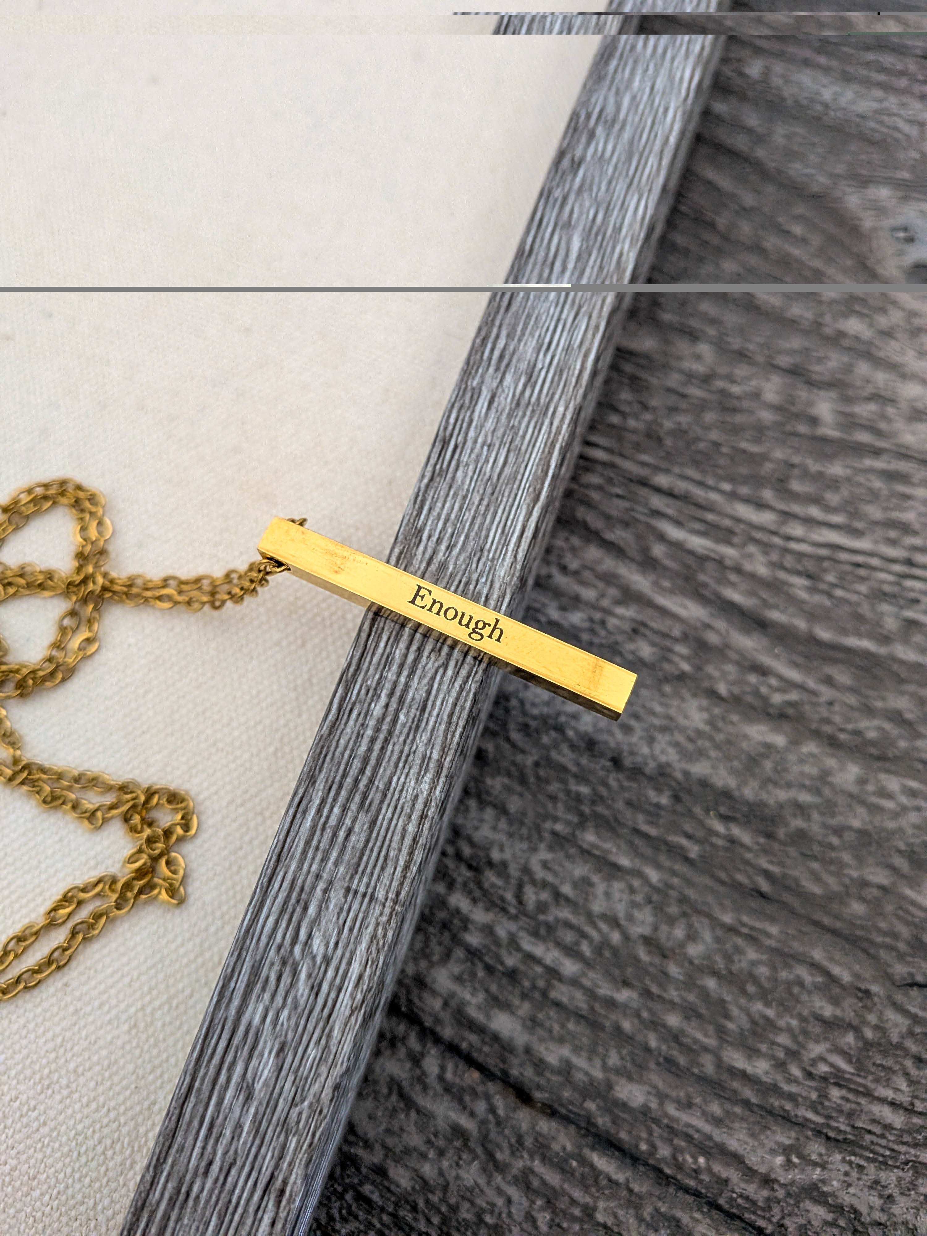 The Enough Necklace speaks to every part of you that has ever questioned your worth. It quiets the inner critic and replaces it with truth: who you are is whole, worthy, and already enough. Let this piece remind you daily.